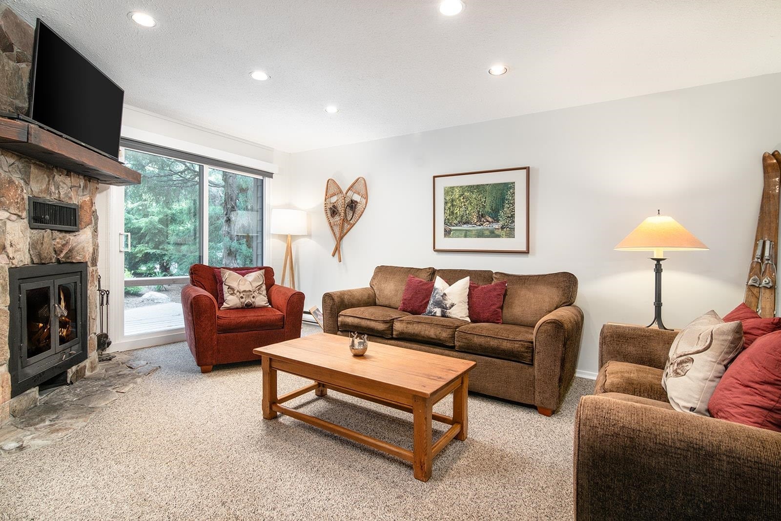 Rarely available, this spacious 4-bedroom + den townhome in the Nesters complex offers over 1,700 sq ft across multiple levels with great separation of space. The den provides flexible use as an office, guest room, or storage. Enjoy two covered balconies, a cozy wood-burning fireplace, two parking stalls and plenty of storage space for all your adventure gear. Recent strata upgrades and renovations completed, add value and peace of mind. Located in a quiet, central location, just steps away to Nesters Market, the Valley Trail, and a short walk or bike to Whistler Village. A unique opportunity in a well-managed, residential complex.